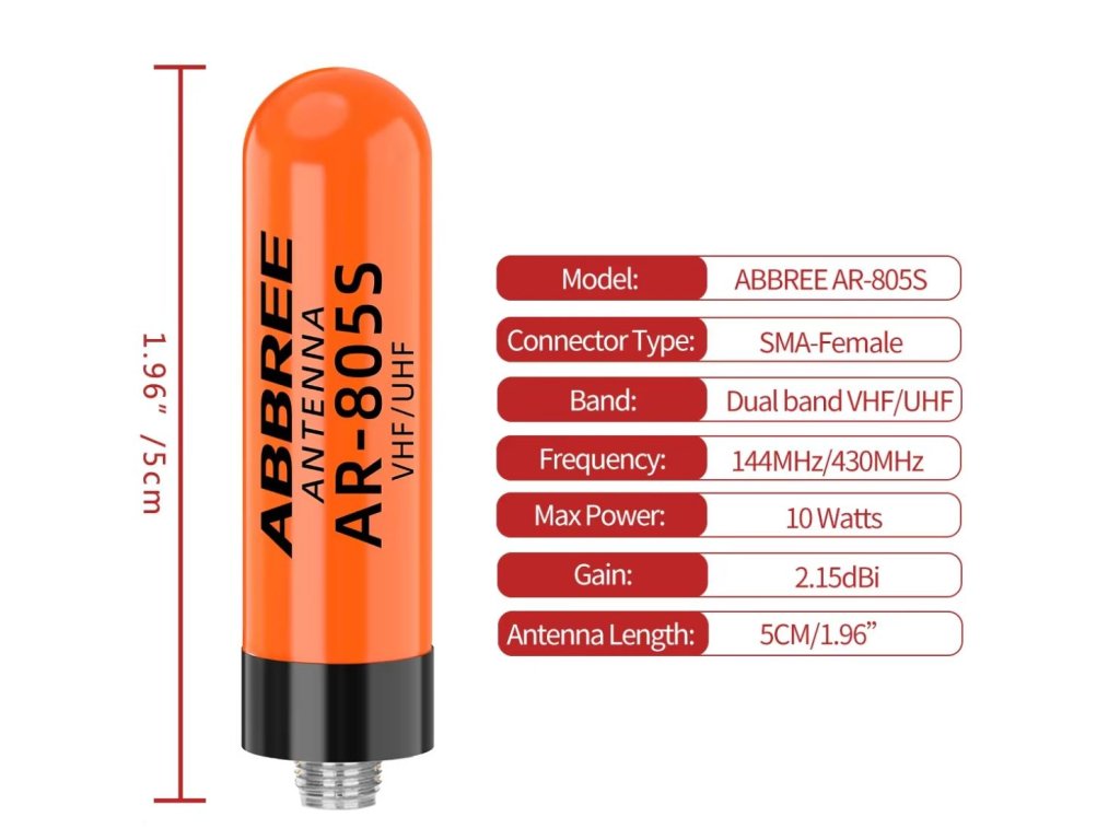 ABBREE AR-805S je ultrakompaktní dvoupásmová anténa určená pro ruční radiostanice VHF/UHF. Díky velmi krátké délce pouhých 5 cm je ideální pro každodenní nošení, diskrétní použití a situace, kde překáží klasické dlouhé antény. Přes své miniaturní rozměry nabízí stabilní příjem a solidní zisk pro běžnou komunikaci.