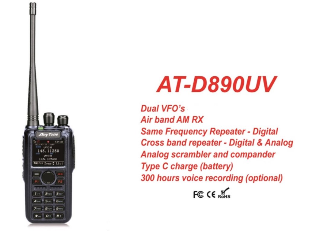 ANYTONE AT-D890UV dualband DMR, AIR RX, GPS, APRS, Bluetooth