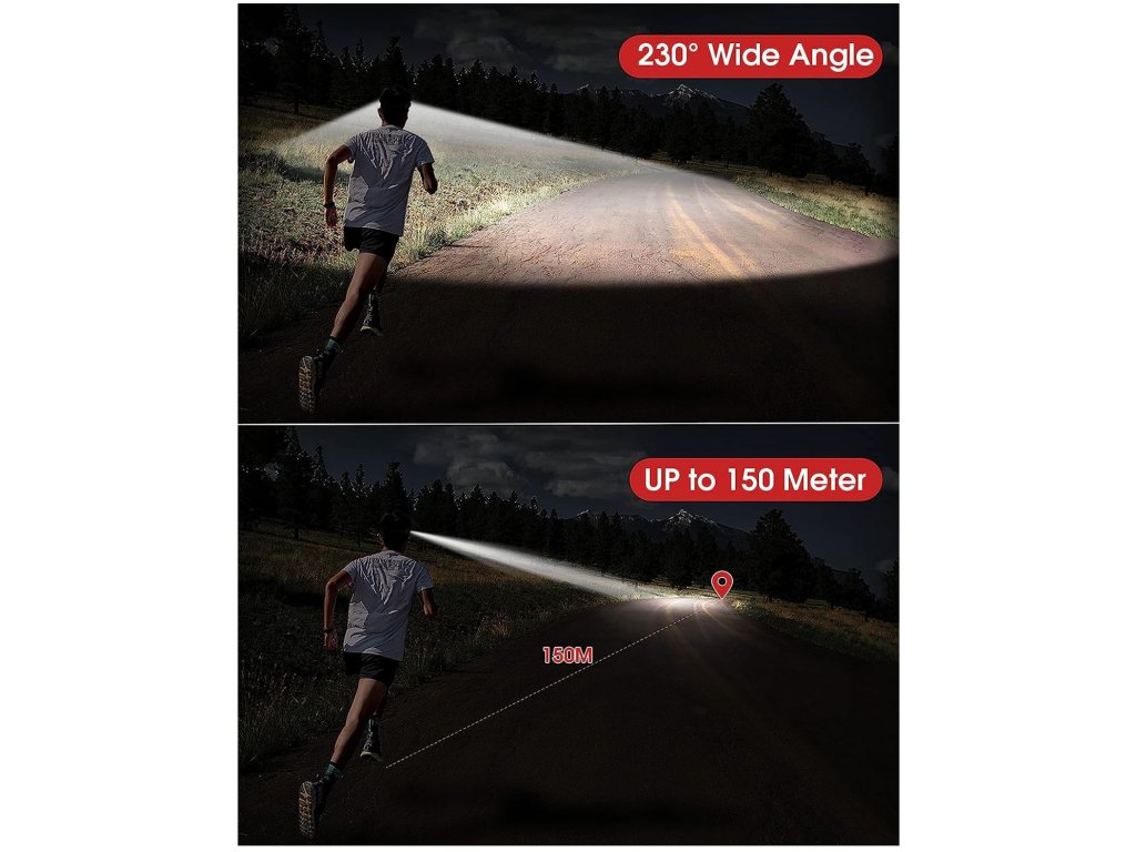 - 【 Super jasná čelovka & 230° širokoúhlé osvětlení 】 nabíjecí čelovka nabízí ve srovnání s obyčejnou LED čelovkou 230° ultra široký úhel osvětlení pro snadné osvětlení tmavých koutů okolo vás. Kapesní svítilna Light Strip s předním COB LED světlem a boční LED čelovka nabízí jasný prostor, když rybaříte a běháte. Úhel osvětlení 230° lze snadno osvětlit tmavé prostředí.
