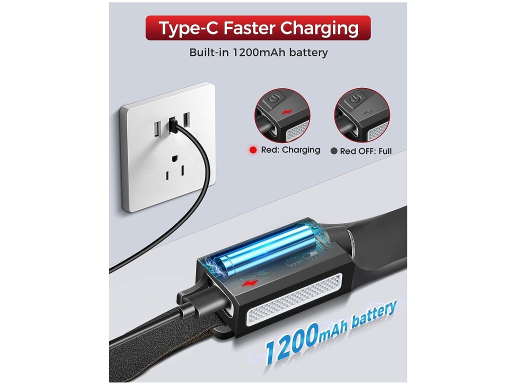 - 【 Dobíjecí USB 】 IPX4 vodotěsné LED světlo dobíjecí baterie, zabudovaná se nabíjí čelovka přes dodávaný USB nabíjecí kabel, který lze propojit s každou USB nabíječkou nebo portem. S dobou nabíjení pouze 2 hodiny poskytuje dobíjecí běhací lampa až 4–8 hodin konstantního světla. Až 30 h blikání.