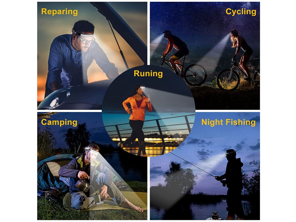 - 【 Super jasná čelovka & 230° širokoúhlé osvětlení 】 nabíjecí čelovka nabízí ve srovnání s obyčejnou LED čelovkou 230° ultra široký úhel osvětlení pro snadné osvětlení tmavých koutů okolo vás. Kapesní svítilna Light Strip s předním COB LED světlem a boční LED čelovka nabízí jasný prostor, když rybaříte a běháte. Úhel osvětlení 230° lze snadno osvětlit tmavé prostředí.