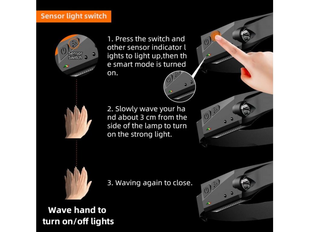 - 【 Inteligentní senzor & 5 světelných režimů 】Čelovka LED má 6 režimů jasu: COB vysoká bílá/ COB nízká bílá / COB vysoká červená / COB nízká červená / XPE vysoká/ XPE nízké / XPE nízké. USB LED čelovka čelovka má inteligentní senzorový režim, můžete také zapnout senzorovou funkci čelovky. LED kapesní svítilnu jednoduše zapněte a vypněte pohybem ruky - mávnutím podél hlavy zepředu do zadu. Nicméně senzor je dost citlivý. Může reagovat i na vzdálenější předměty, například při průchodu dveřmi. Pokud bude vadit a chcete ho přesto používat, lze přijímač i vysílač zbarvit třeba černou fixou.