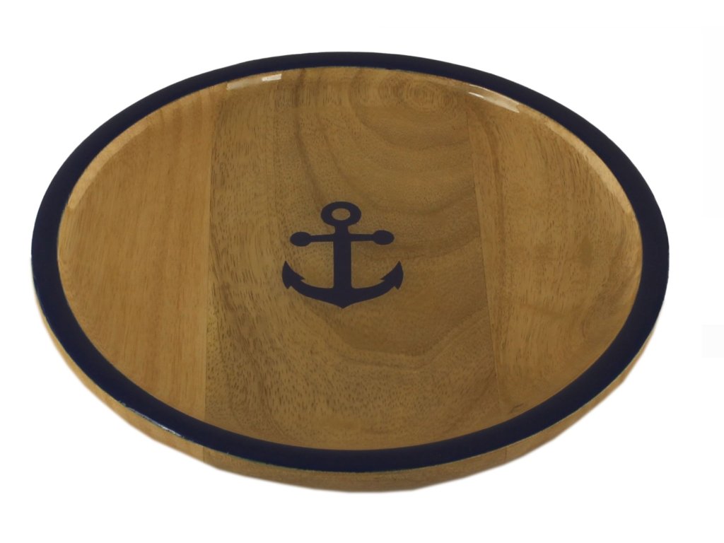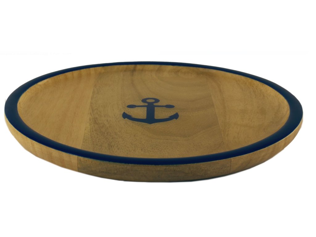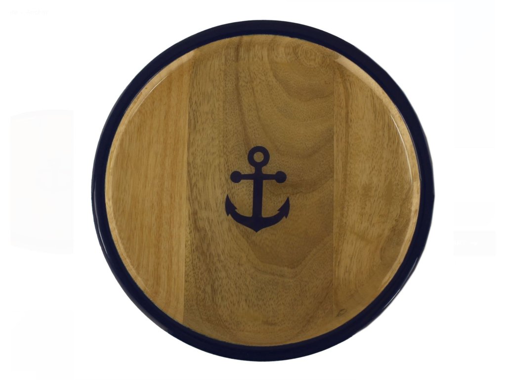 Dřevěný kruhový podnos s gravírovanou kotvou od německého výrobce Sea-Club.