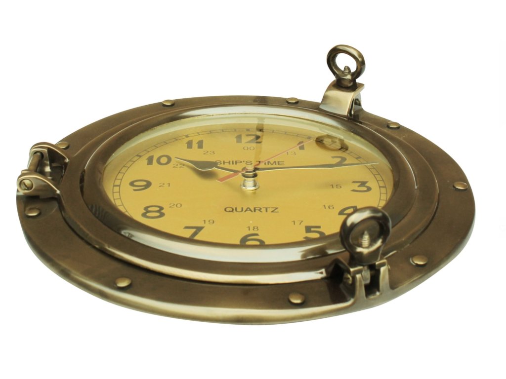 Luxusní mosazné hodiny ve tvaru lodního okna - porthole clock.