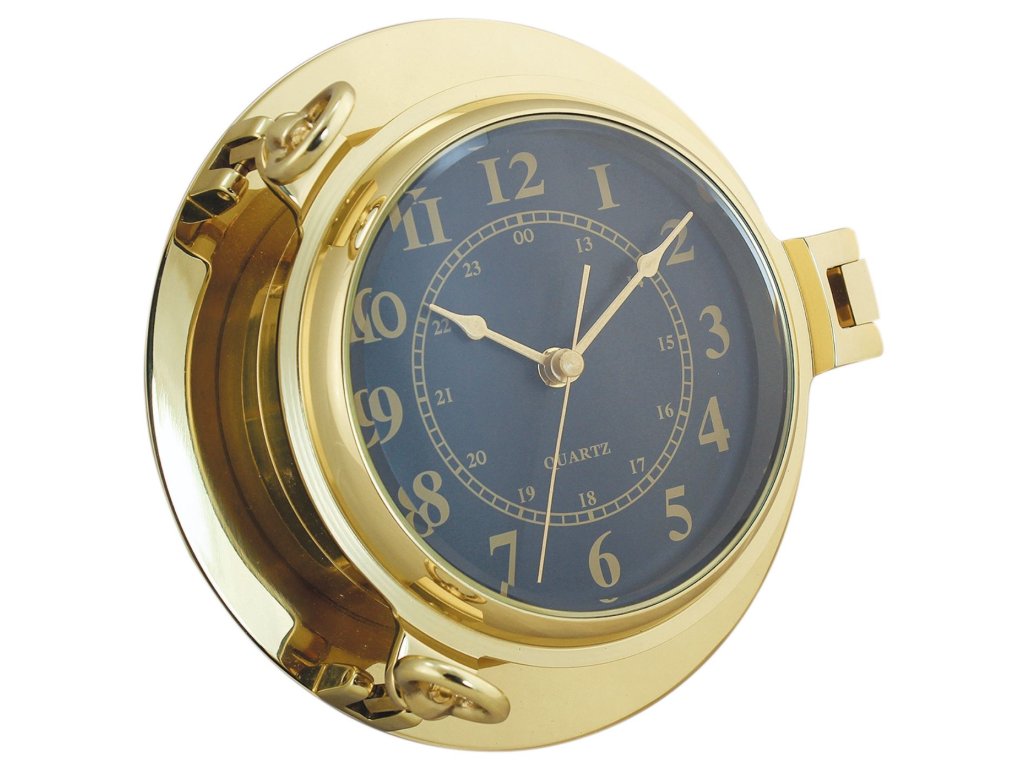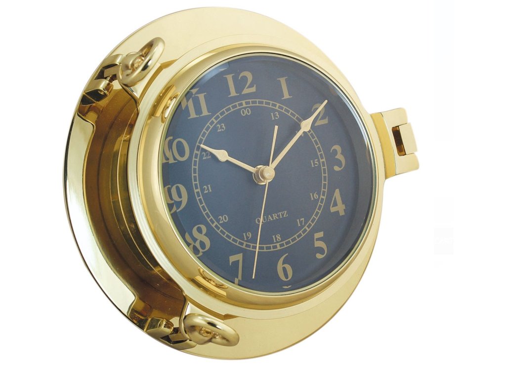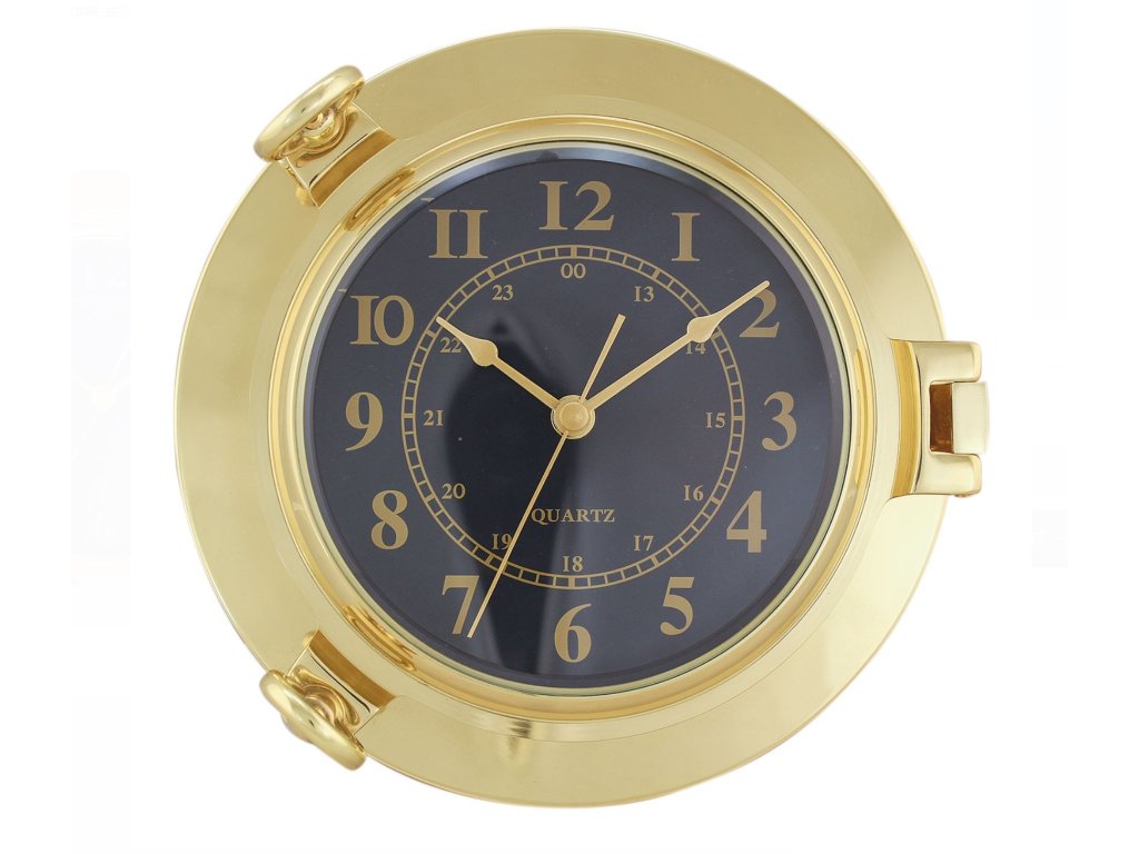 Luxusní mosazné hodiny ve tvaru lodního okna - porthole clock.