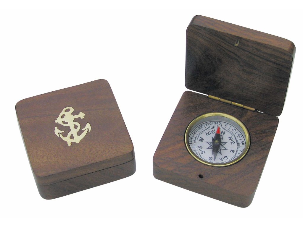 Kompas zasazený do dřevěné krabičky 8239