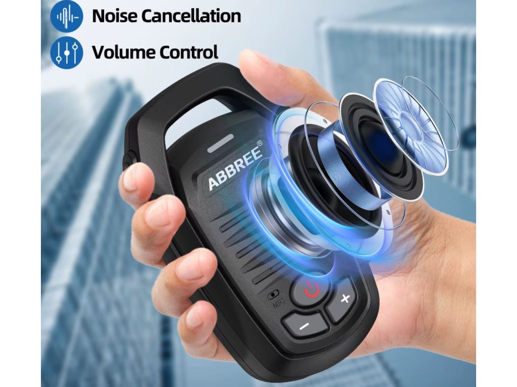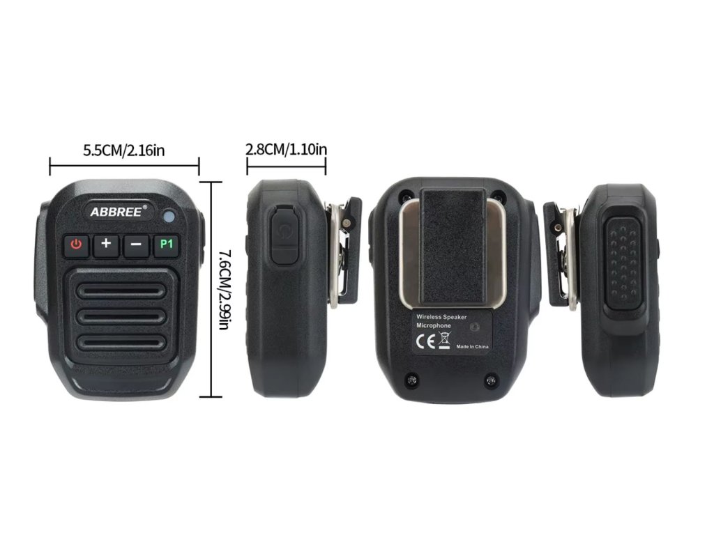 Profesionální bezdrátový speaker mikrofon ABBREE s Bluetooth připojením je ideálním řešením pro uživatele ručních radiostanic, kteří chtějí maximální volnost pohybu bez kabelů. Odolné provedení s krytím IP67 zajišťuje ochranu proti prachu i dočasnému ponoření do vody – vhodné pro outdoor, práci v terénu i náročné podmínky.