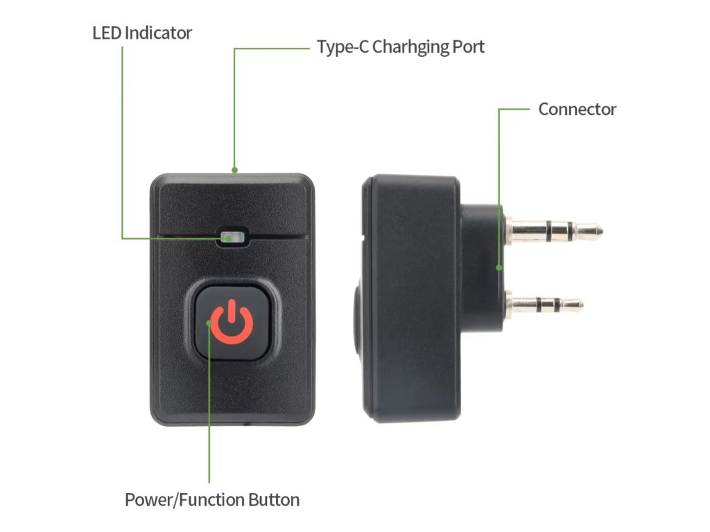 Stačí lehce stisknout tlačítko na adaptéru a propojit radiostanici s mikrofonem přes PTT.