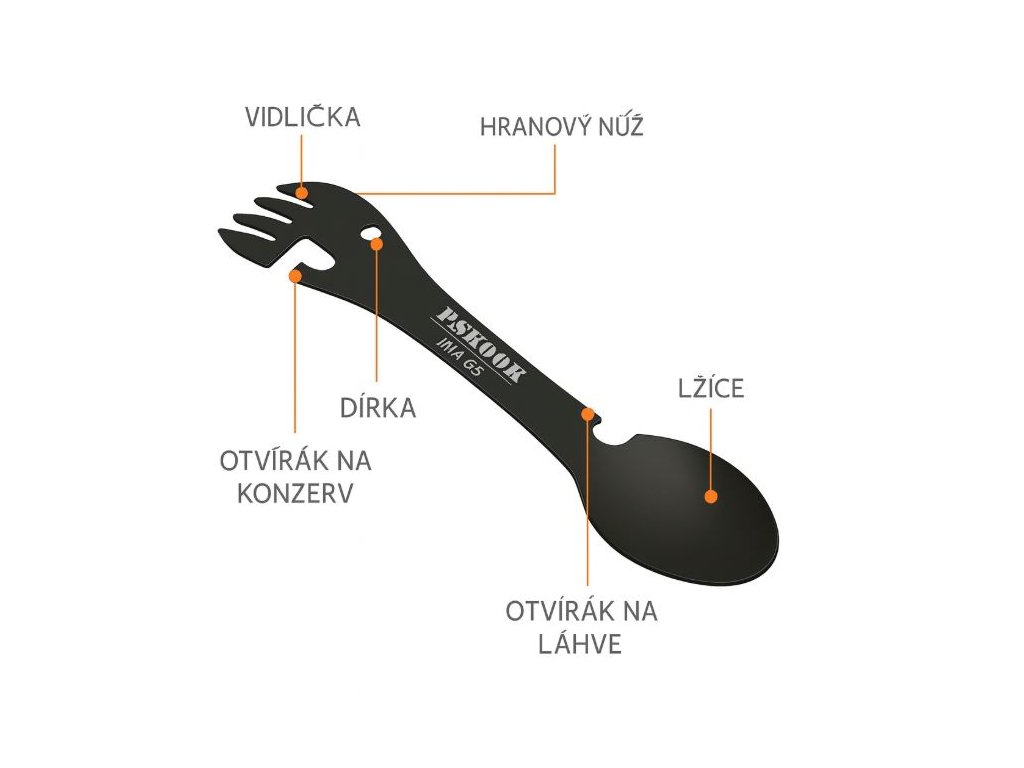 Obsah balení: 1× PSKOOK 5v1 příbor + S-karabina
