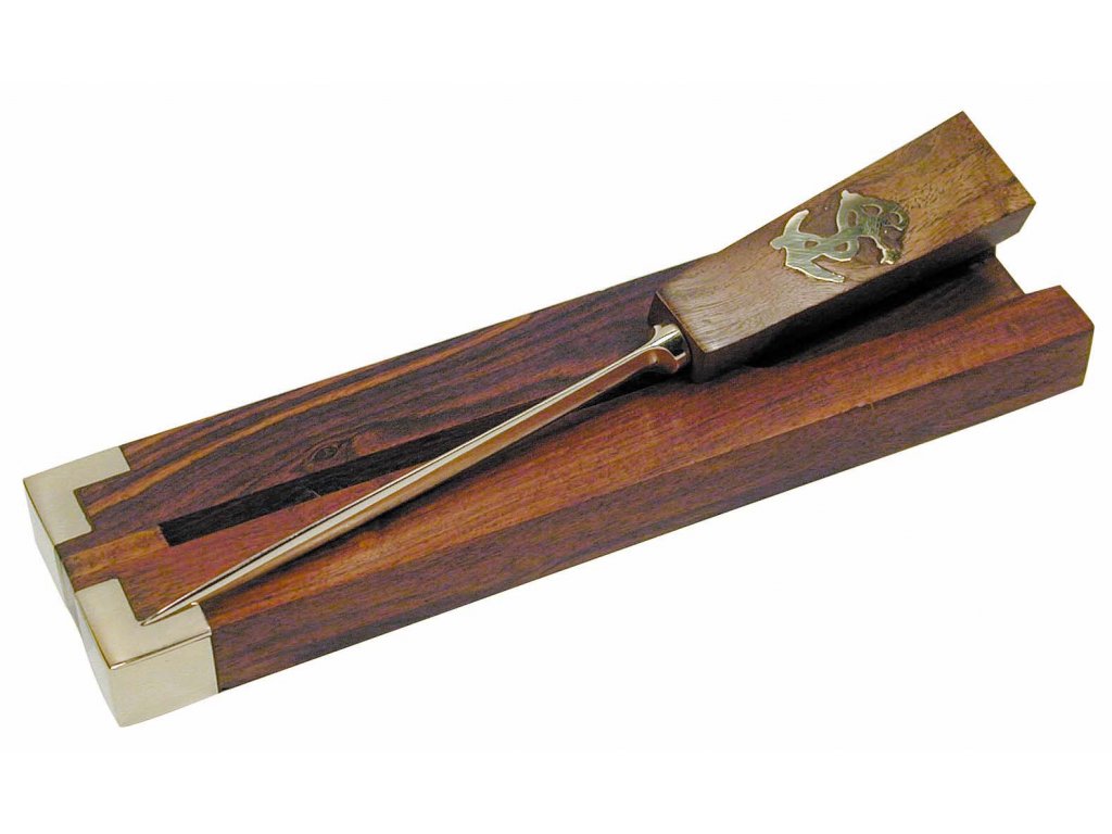 Mosazný nůž na dopisy s dřevěnou rukojetí a mosazným motivem kotvy - výborný pomocník do kanceláře, domácí pracovny nebo i na cesty. Díky hrotu lze použít nejen na otvírání dopisů.