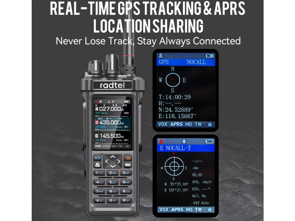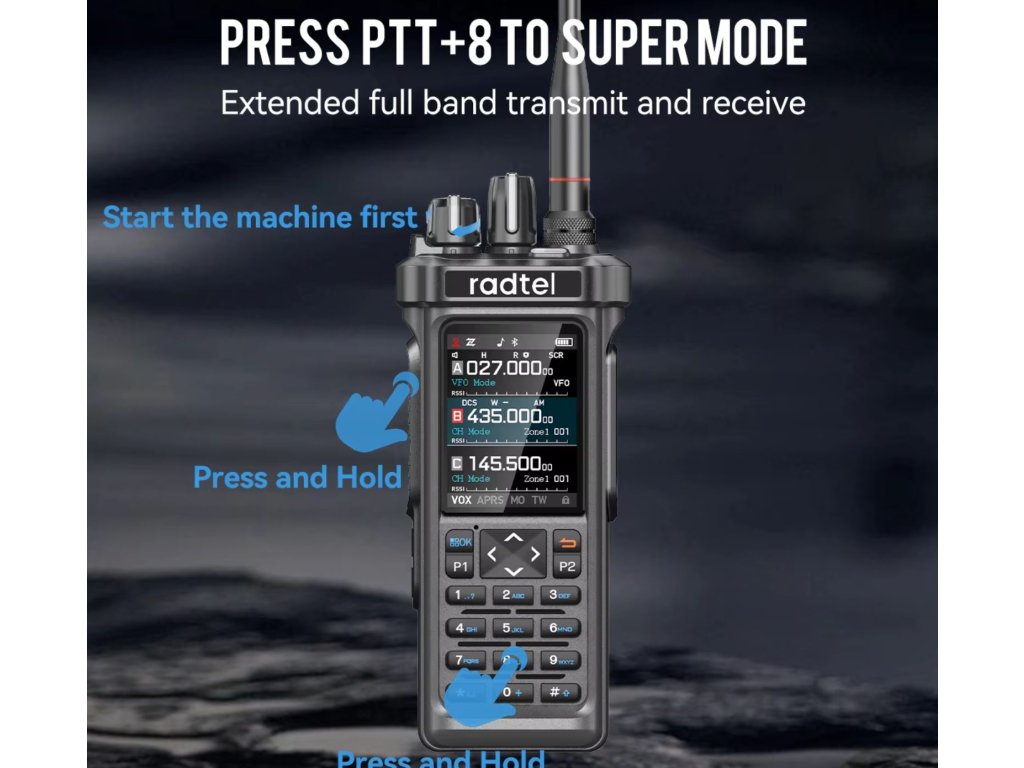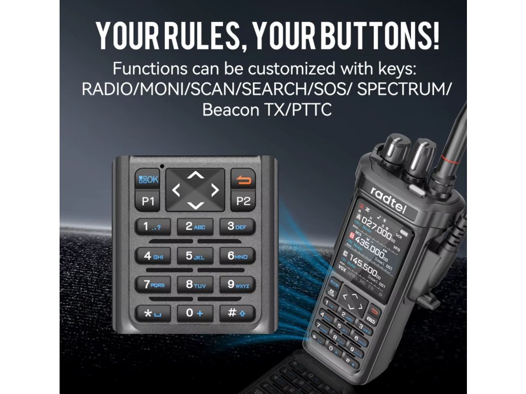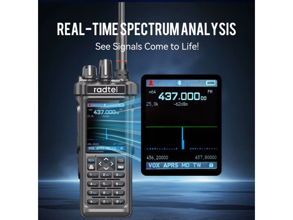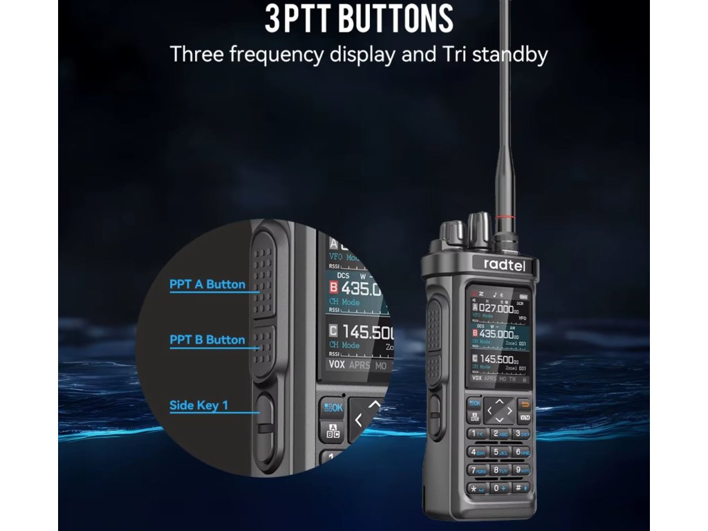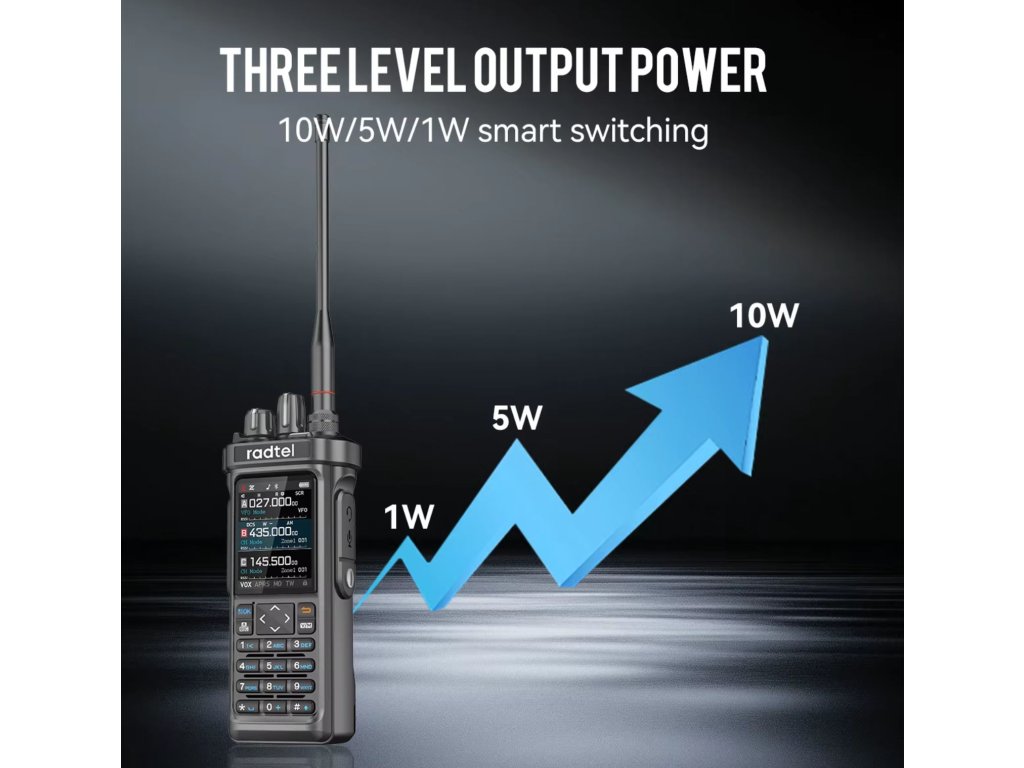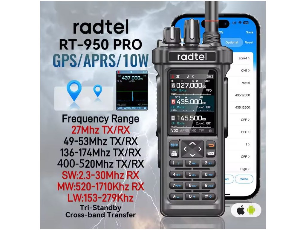 Radtel RT-950 je přenosná vícepásmová radiostanice nové generace, která spojuje funkce ham rádia, CB přijímače a širokopásmového scanneru v jediném zařízení. Díky Bluetooth programování přes mobilní aplikaci a možnosti tri-standby máte přehled až o třech pásmech současně.