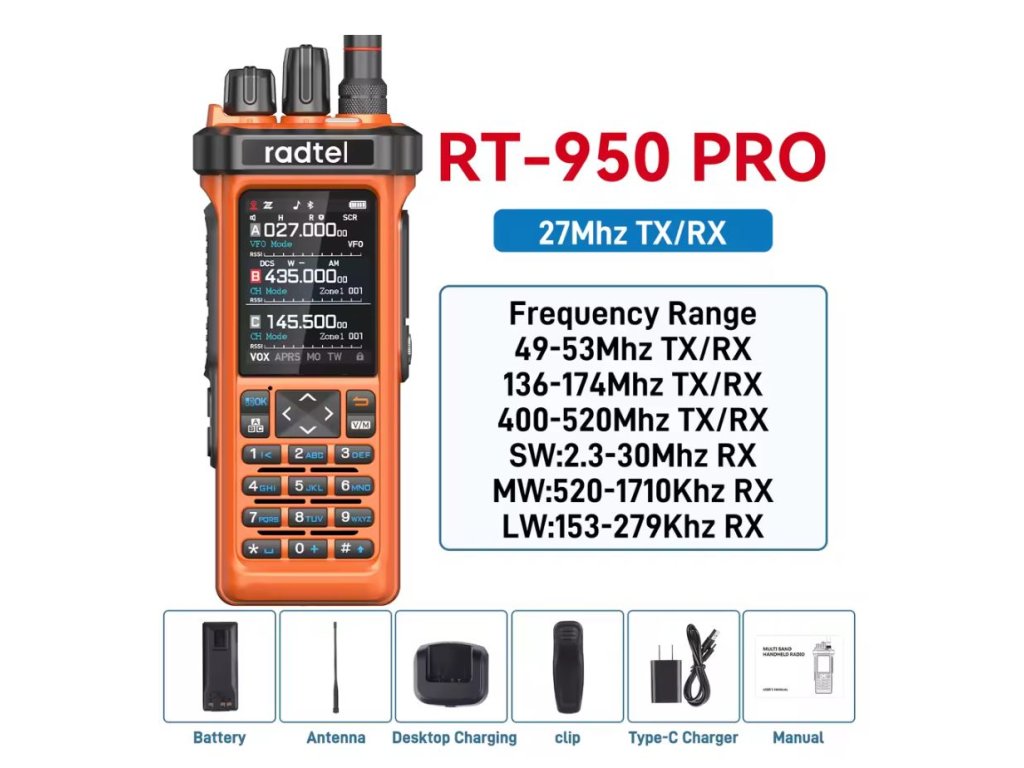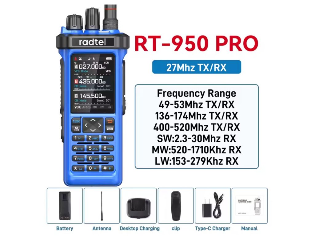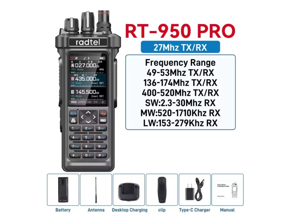✅ Radtel RT-950 / RT-950 PRO je ideální volbou pro radioamatéry, cestovatele i profesionály, kteří hledají výkonnou víceúčelovou stanici s možností příjmu širokého spektra signálů – od CB a ham pásem až po letecké frekvence.