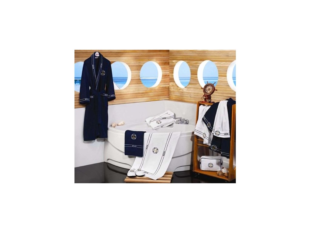 Krásně měkké na pokožce a vysoce absorbční - takové jsou vlastnosti froté ručníků a osušek z námořní kolekce MARINE, které se hodí jak do koupelny, tak na Vaši jachtu. V nabídce také pánské župany, koupelnové předložky a papučky ve stejném designu.