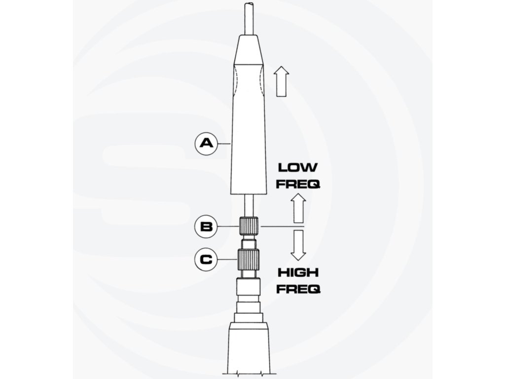 Velmi krátká a diskrétní mobilní magnetická CB anténa, laditelná délkou. Od výroby naladěna na střední pásmo.