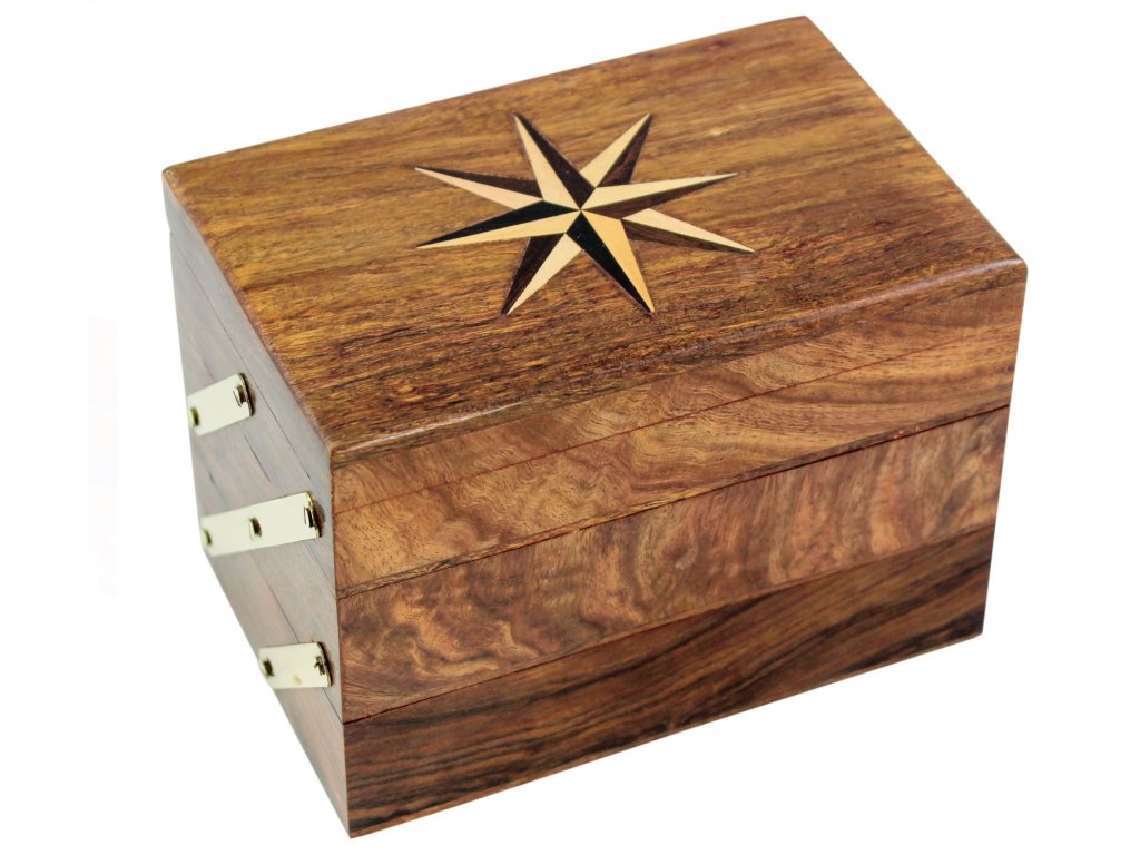 Dřevěný box na drobné věci z palisandru, mosazné kování a znak kotvy.