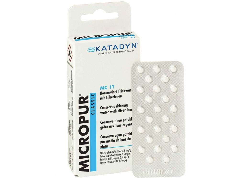 Účinek tablet Katadyn Micropur Classic MC 1T (Tablety) je založen na bakteriostatických a baktericidních vlastnostech stříbra. Na rozdíl od chlóru, který je účinný pouze několik hodin ve vodě, stříbrné ionty zachovávají vodu po dobu až 6 měsíců. Ionty stříbra lpí na buněčných stěnách mikroorganismů, čímž brání jejich růstu.