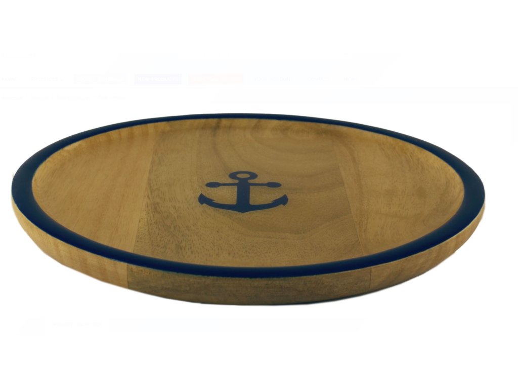 Elegantní dekorativní talíř z mangového dřeva s emailovou (smaltovanou) vrstvou a motivem kotvy. Ideální jako stylový doplněk do interiéru, na servírování drobných pochutin, jako dekorace na stůl, nebo jako dárek pro milovníky moře a námořního stylu. Velký dřevěný talíř kotvy pro ovoce, občerstvení i hlavní chody vařených jídel.