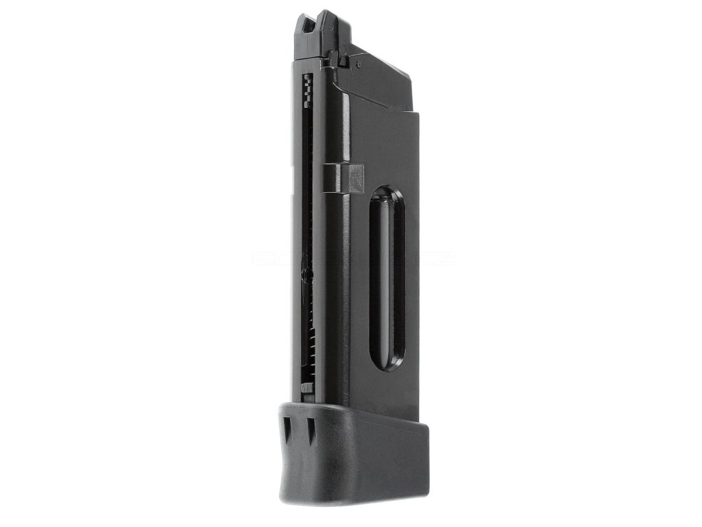 Kovový zásobník má vpředu přihrádku pro ocelové BB střelivo 4,5 mm, které se vkládá z čela zásobníku. Kapacita činí až 17 kusů a zásobník je možné dokoupit jako náhradní.