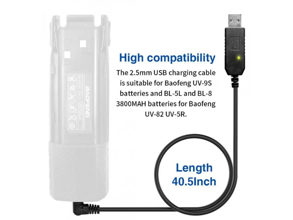 USB nabíjecí kabel pro akumulátor Baofeng UV-5R 3800 mAh Li-Ion