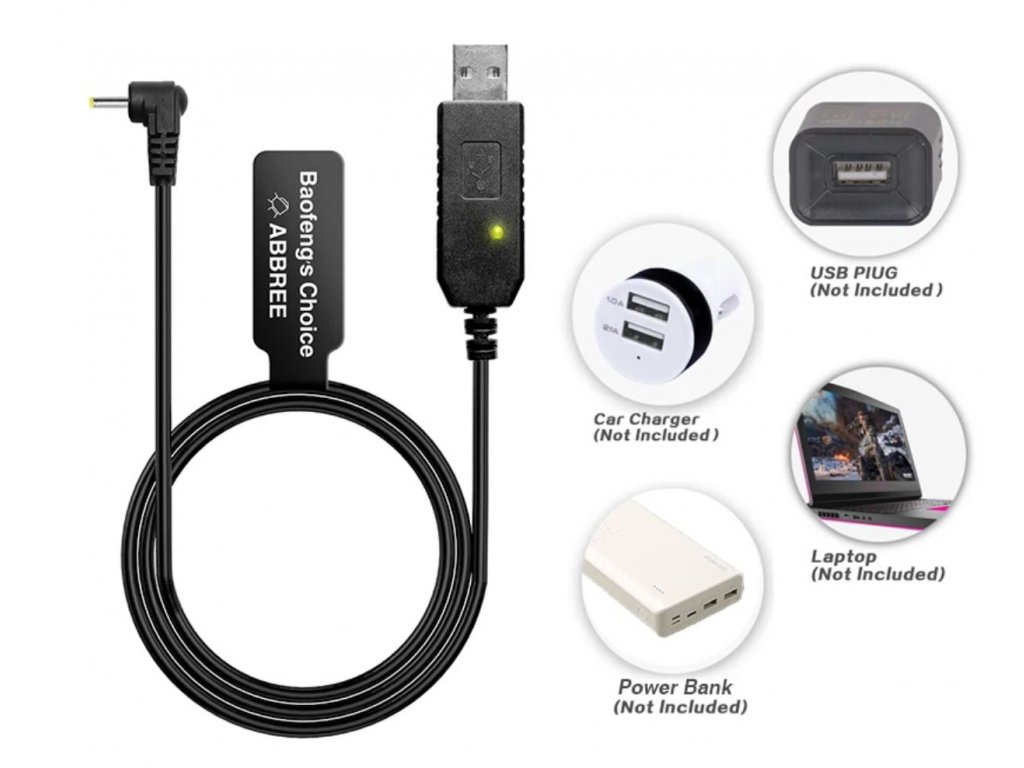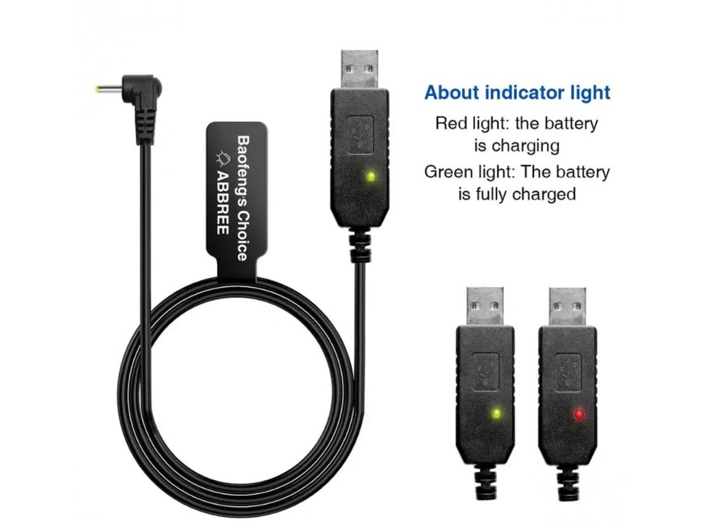 ABREE USB nabíjecí kabel pro náhradní akumulátor k vysílačce BAOFENG UV-5R s kapacitou 3800 mAh. Lze použít přímo, bez stanice.